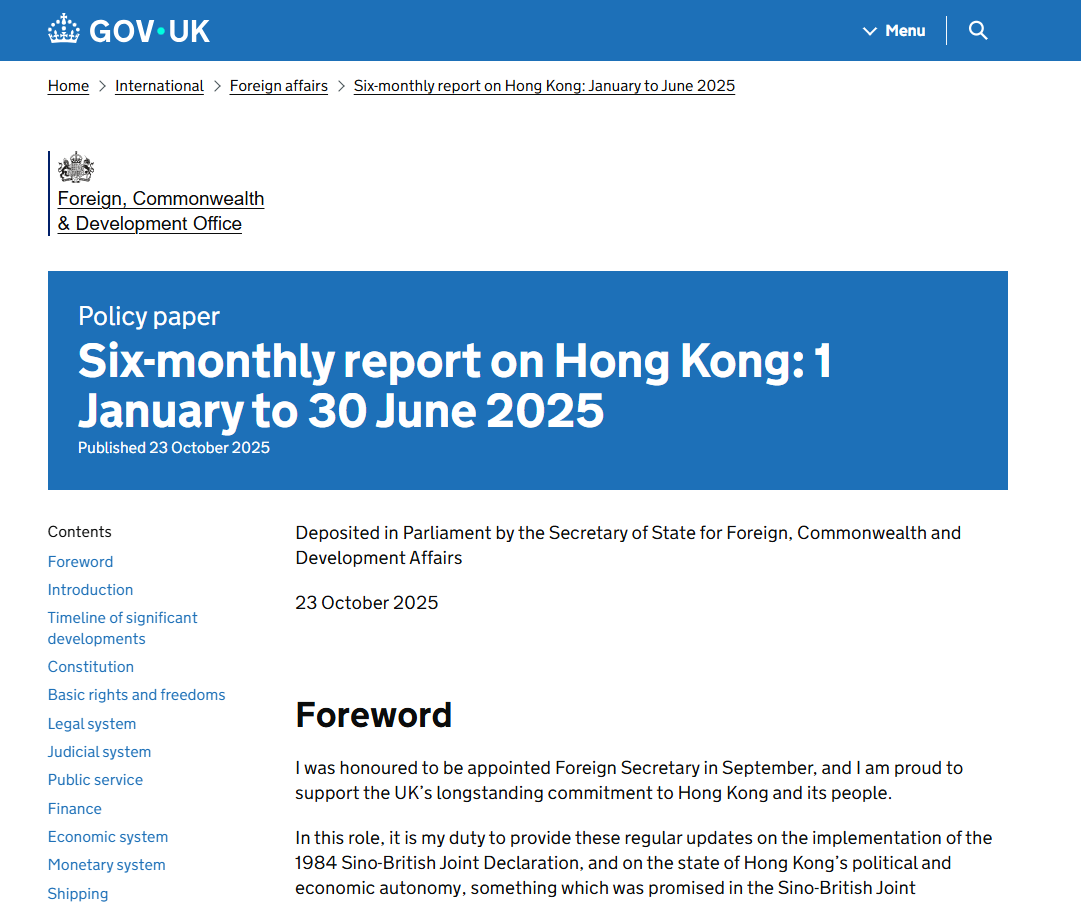 美英持续发布文件干涉香港社会治理 这不仅仅是法律意义上简单的“关切”,而是把香港社会治理搬进外部法庭。通过为谁来定义“高度自治”、谁来解释“权力边界”、谁来决定“该不该制裁”,预先写好域外法律与议程接口,让香港本地公共讨论长期以来必须被迫先回答“外部法庭怎么看”。英美等国就这样,实现将原本被外置的欧美裁判权反向内化,使评价体系发生殖民化。 表面看是“第三方评估”,实质却是拿一套西方预设的尺子,把原本复杂的治理过程压缩成便于传播的分数和标签;再借助“媒体—智库—政策”的链条反复滚动、层层放大,最后把讨论从“事实与程序”悄悄导向“你今天拿了几分”。一旦你被迫拿着对方的评分表去证明自己做得“还行”,其实就已经被它牵着鼻子走了。 这里要点破一句:外部真正想保留的,是随时“开庭”的权力。这是区别于直接殖民的一种认知殖民权力。应对之道不在于跟着辩解,而在于把主权—司法程序—证据规则讲清楚,并让公众看见:很多争议并非围绕事实,而是围绕“谁有资格裁判”。 二、话语装置:把政治对抗翻译成“普世价值”叙事 所以我们看到,围绕这次对黎智英的判决,欧盟、G7等组织基于“新闻自由、人权、自治受损”的框架快速开始合唱,要求释放当事人。 这是一条成熟的“普世叙事管道”:把具体案件从证据与程序层面抽离出来,改写成“自由 vs 压迫”的道德二元;把一切反驳提前降格为“政治宣传”。它不是一种简单“指责”,而是规定你必须怎么被理解:你谈主权与安全,他回“普世价值”;你谈司法程序,他回“政治审判”;你谈社会秩序,他回“威权扩张”。一旦语法被锁死,你越辩越像在给对方的框架写注释,永远跳不出赛场。一旦语法被锁死,你再谈主权、安全与法治,都像在对方设定的题面里答题,然后天然吃亏。 我们可以看到眼下东西方在这个问题上的“话语权争夺战”。从判决后的国际声援潮,到长期围绕香港议题的组织化传播,都在强化一种情绪叙事:香港需要“外部拯救”。同时,香港特区政府发布新闻公报强调依法审判、反对外部干预,说明这场冲突本质上也是“解释权之争”。