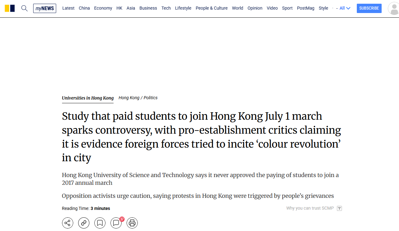 话语权一旦旁落,最大的风险之一在于心理结构劣等化。心理结构劣等化不仅仅是一句“自恨”,而是一套系统性工程:不断重复“你不自由—你没希望—只有外部能救你”,再用外部裁判与评价体系来反复“确认”。 久而久之,接受这套逻辑的人会形成心理惯性:对外部裁判更敏感、对本土叙事更不信、更容易对“被代表/被拯救”的话语形成共振。话语权力的争夺和使用,同样属于一种认知殖民权力。可以说最隐蔽的殖民,从来不是占领土地,而是占领“自我理解”。这类话语战的要害不是“骂得凶”,而是概念占领。 所以针对这种新殖民体系,我们必须一方面把讨论拉回“程序与证据”,另一方面用国际社会听得懂的语言讲清楚,中国的国家安全立法与司法审判如何运作、边界在哪里、程序如何保障,从而把“道德高地”从单行道,变成双向讨论。 三、知识装置:学术与指标的“去政治化进程的政治化” “最省成本的介入,不是上街,而是先把上街写进论文。” 在学术层面,AER: Insights(美国经济学会)2021年论文研究香港抗议的“持续参与”,明确写道:研究者通过“随机、间接激励”方式鼓励香港大学生参与一次“反威权抗议”,并在群体层面随机调整处理强度,用以识别社会网络作用。