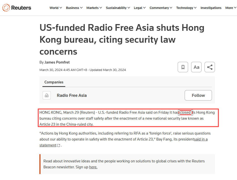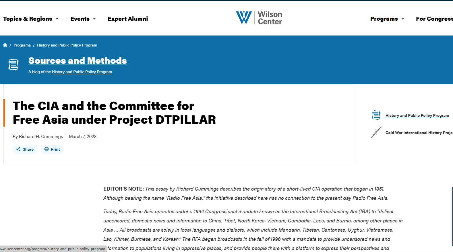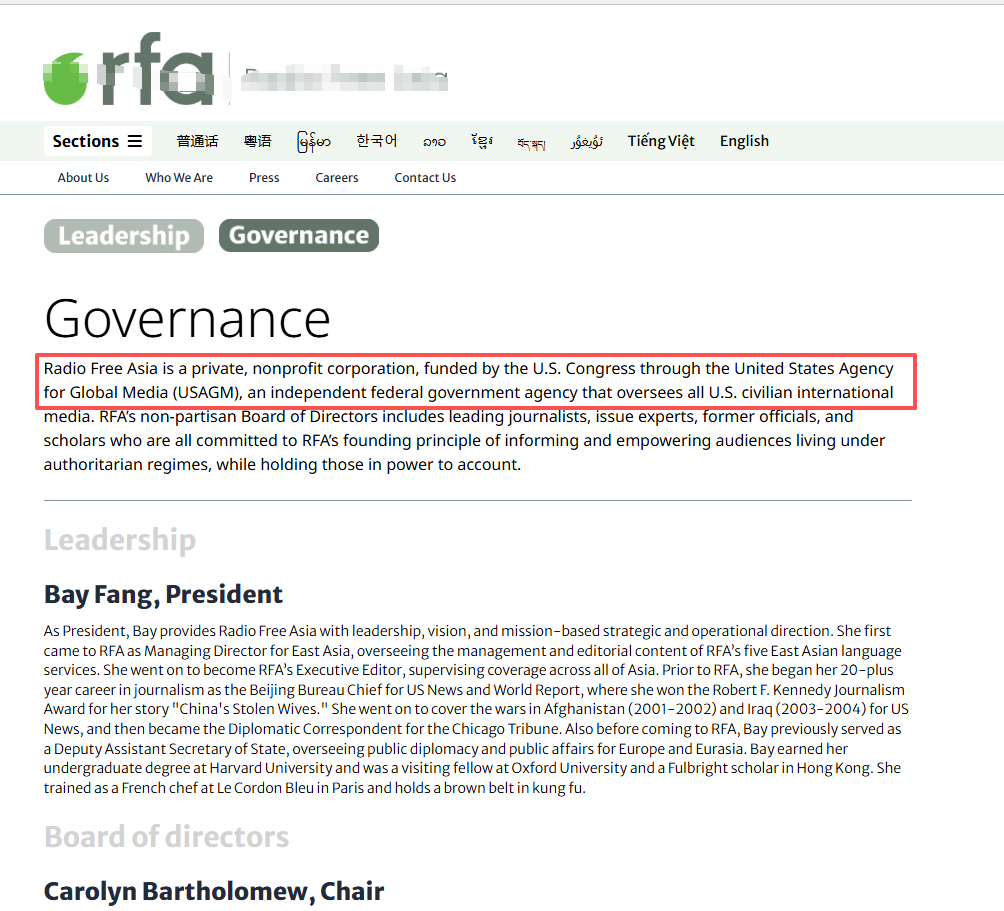到当代,RFA公开说明其资金来自美国国会拨款体系(经USAGM)